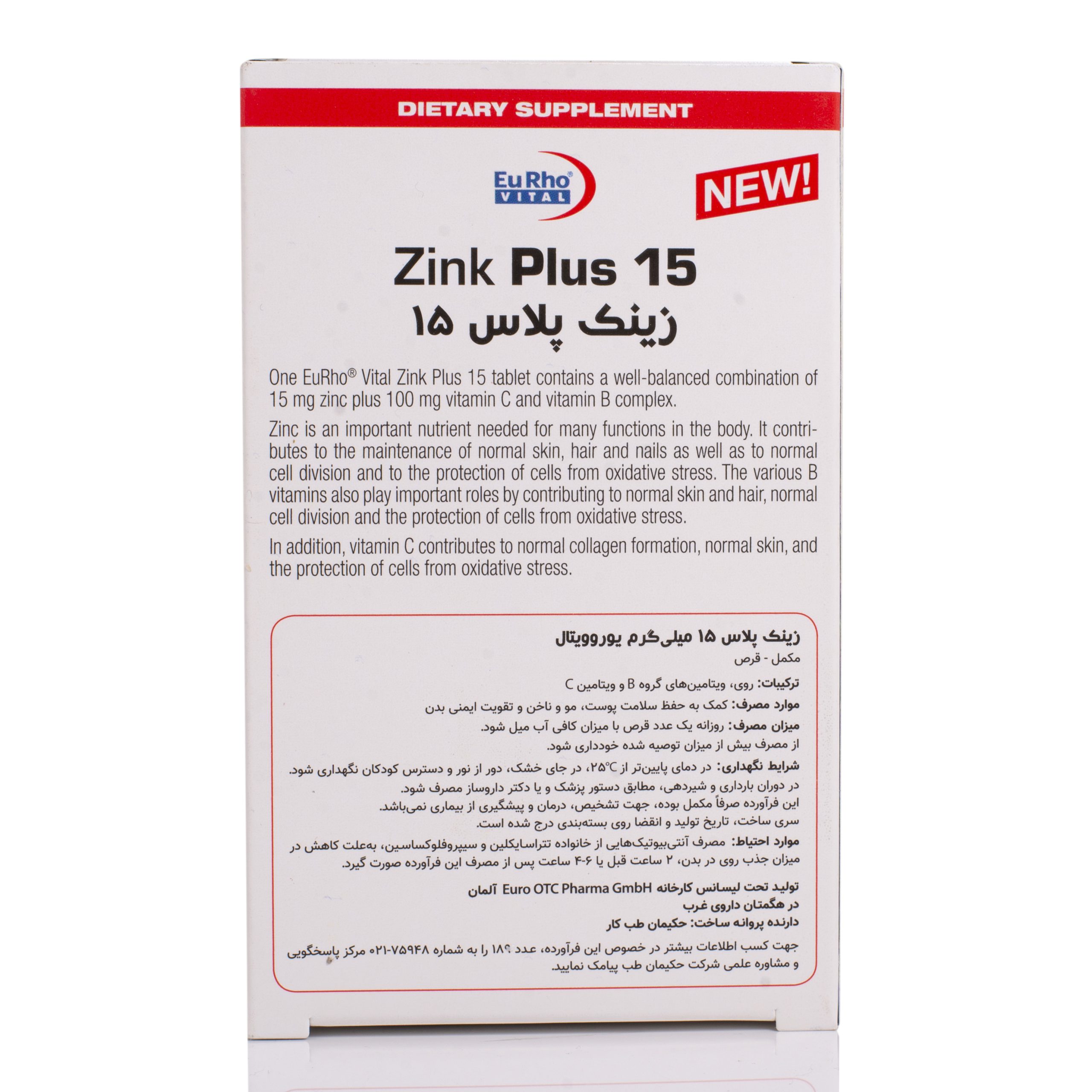 حاوی مقدار 15 میلی گرم زینک در هر قرص