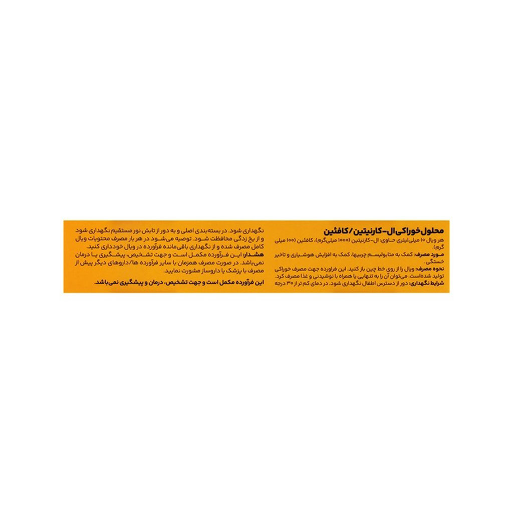دارای 1000 میلی گرم لووکارنیتین به همراه 100 میلی گرم کافئین در هر ویال