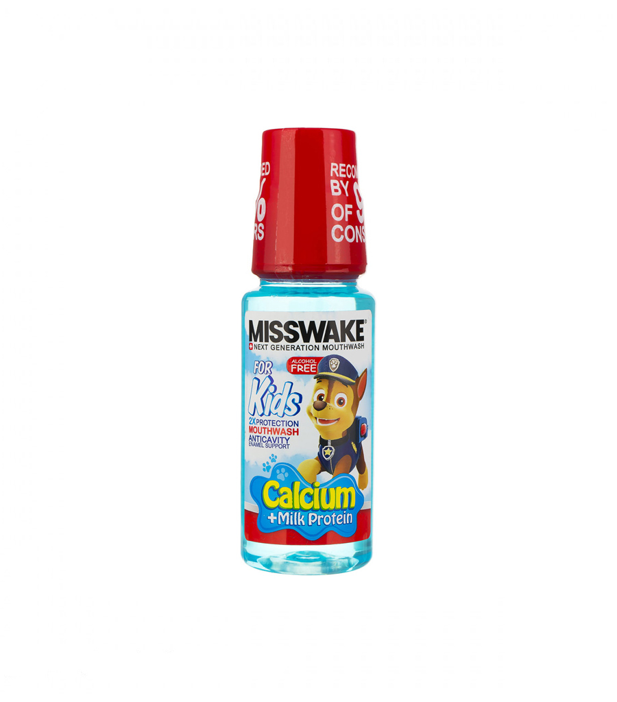 دهانشویه کودکان حاوی کلسیم و پروتئین شیر میسویک را روزی دو بار بعد از مسواک زدن، به مدت یک دقیقه در دهان بچرخانید.