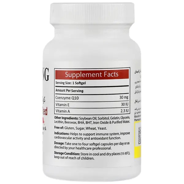 حاوی 30 میلی گرم کوآنزیم کیو10 در هر کپسول ژلاتینی