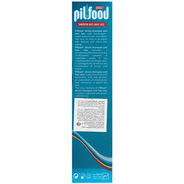 شامپو ضد ریزش دایرکت پیلفود برای جلوگیری و کاهش ریزش مو است. قبل از مصرف بطری شامپو مناسب موی دارای ریزش پیلفود را تکان دهید. شامپو را روی موی خیس ماساژ دهید و بعد از ۲-۳ دقیقه آبکشی نمایید.