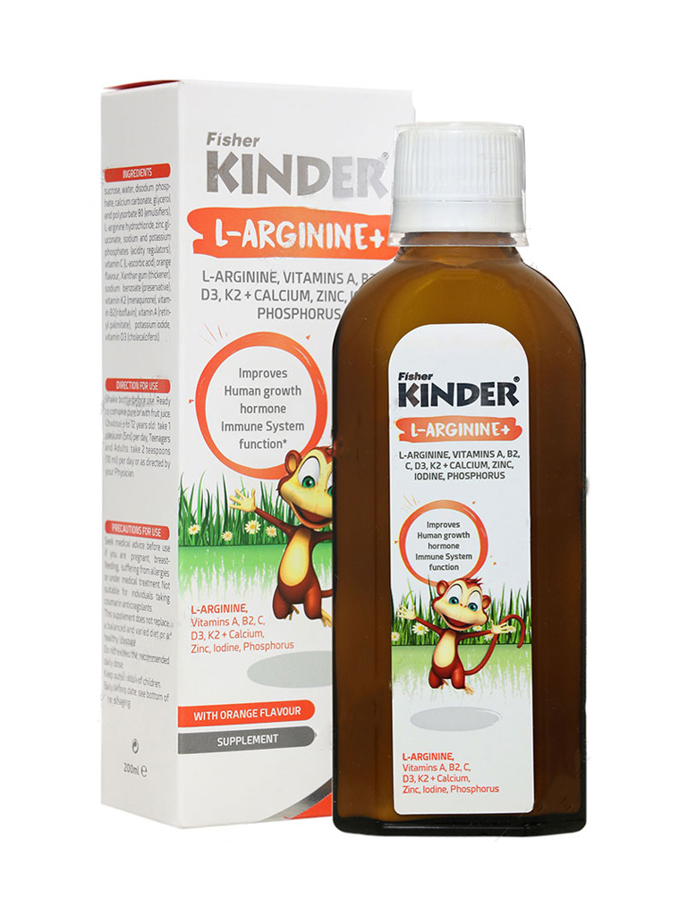 شربت ال آرژنین پلاس فیشر کیندر حجم 200 میلی لیتر