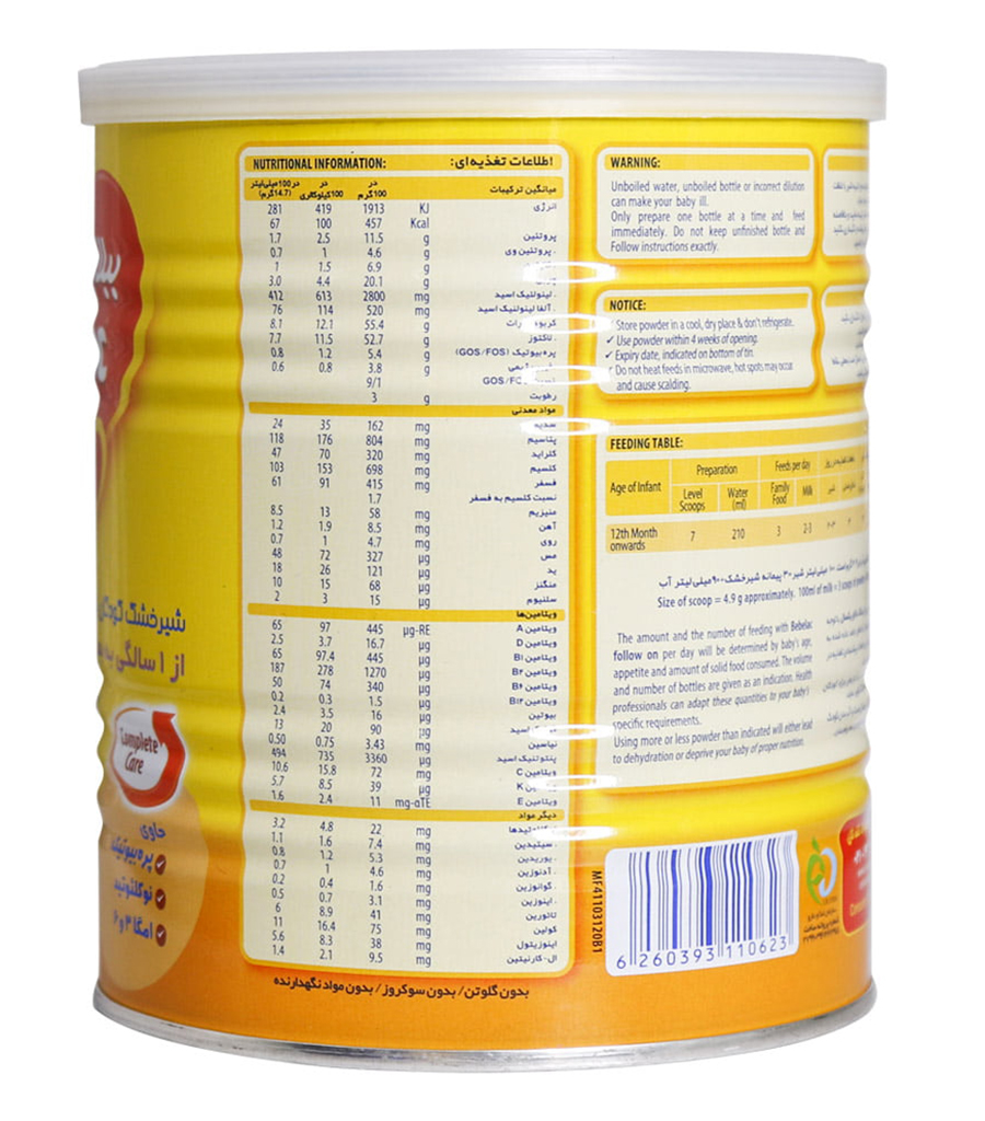 حاوی پروتئین ، مناسب نوزادان از از بدو تولد تا 6 ماهگی