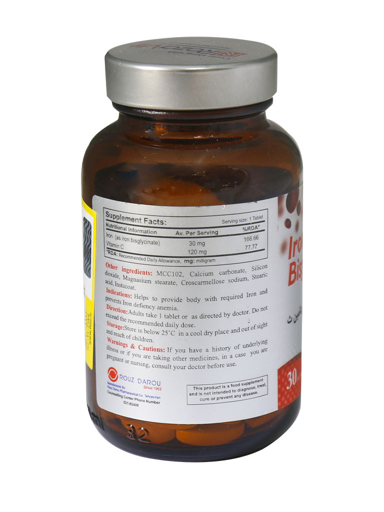 قرص آهن بیس گلیسینات پلاس ویتامین C رزاویت 30 عددی