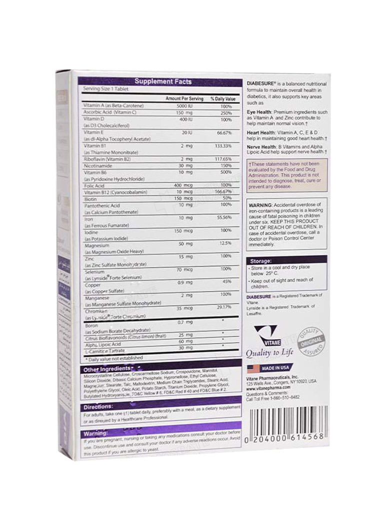 حاوی ویتامینها و مواد معدنی مورد نیاز بدن، مولتی ویتامین و مینرال مخصوص افراد دیابتی