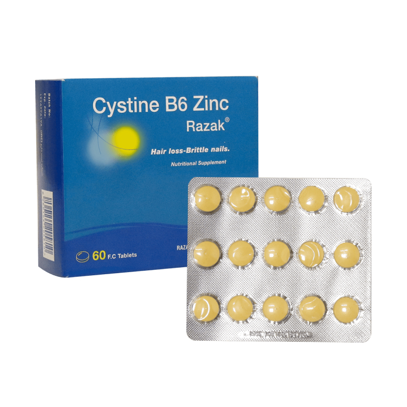 قرص سیستین B۶ زینک رازک مکملی جهت تغذیه، تقویت و افزایش رشد مو و ناخنها با فرمولاسیون کاملی از اسیدهای آمینه، ویتامینها و مواد معدنی است.
