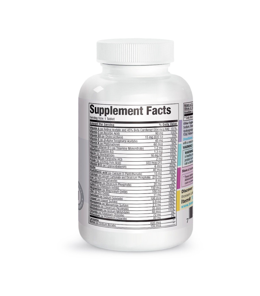 | عنوان | مقدار متوسط در هر قرص | درصد نیاز روزانه |