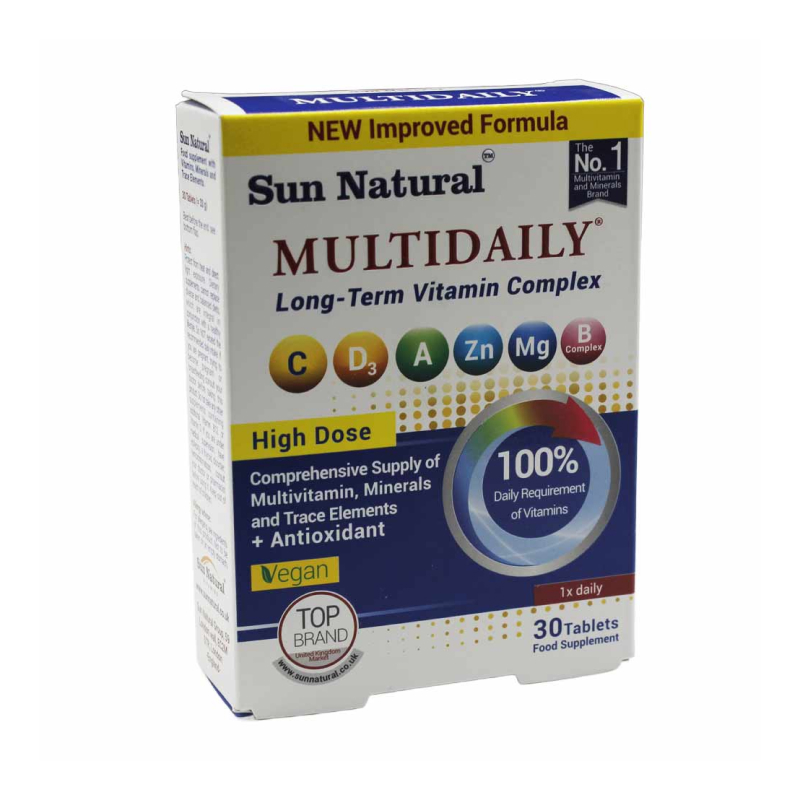 قرص مولتی دیلی سان نچرال 30 عددی محصولی مناسب جهت تامین مواد مغذی بدن است.
