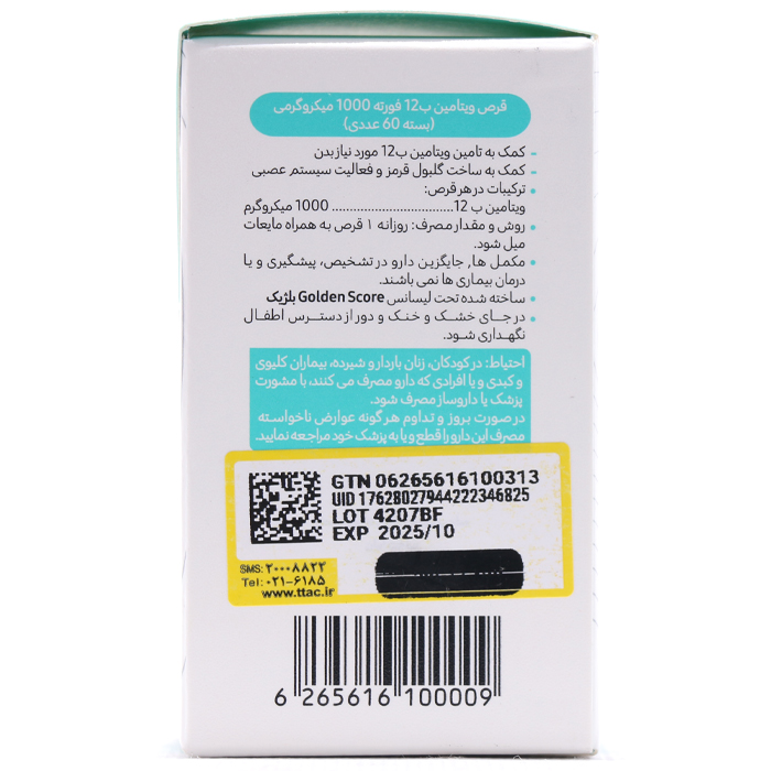 قرص ویتامین B۱۲ فورته ۱۰۰۰ میکروگرم گلدن اسکور ۶۰ عددی