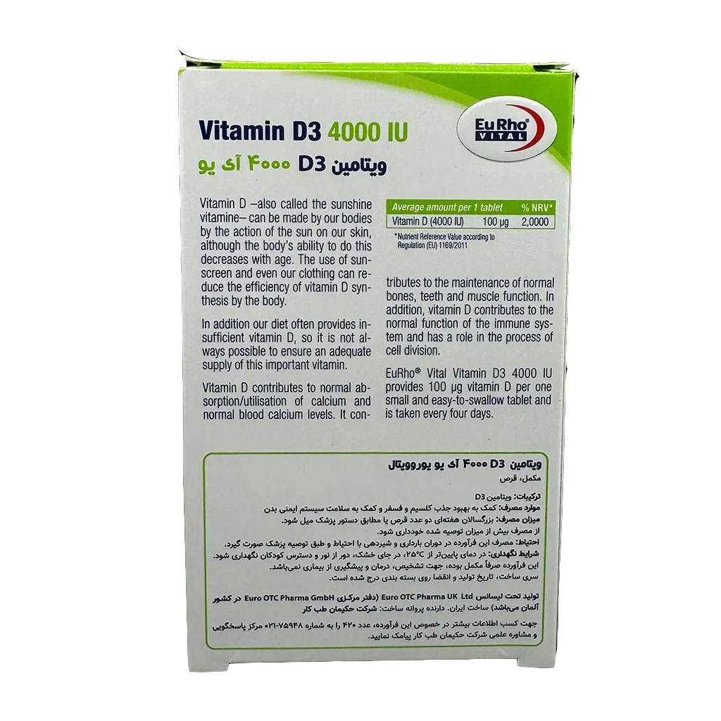 قرص ویتامین D3 یوروویتال 4000 واحد 60 عددی