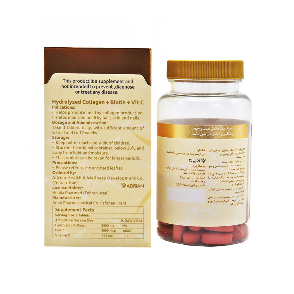 قرص کلاژن گلد بیوتین و ویتامین سی آدریان 60 عددی