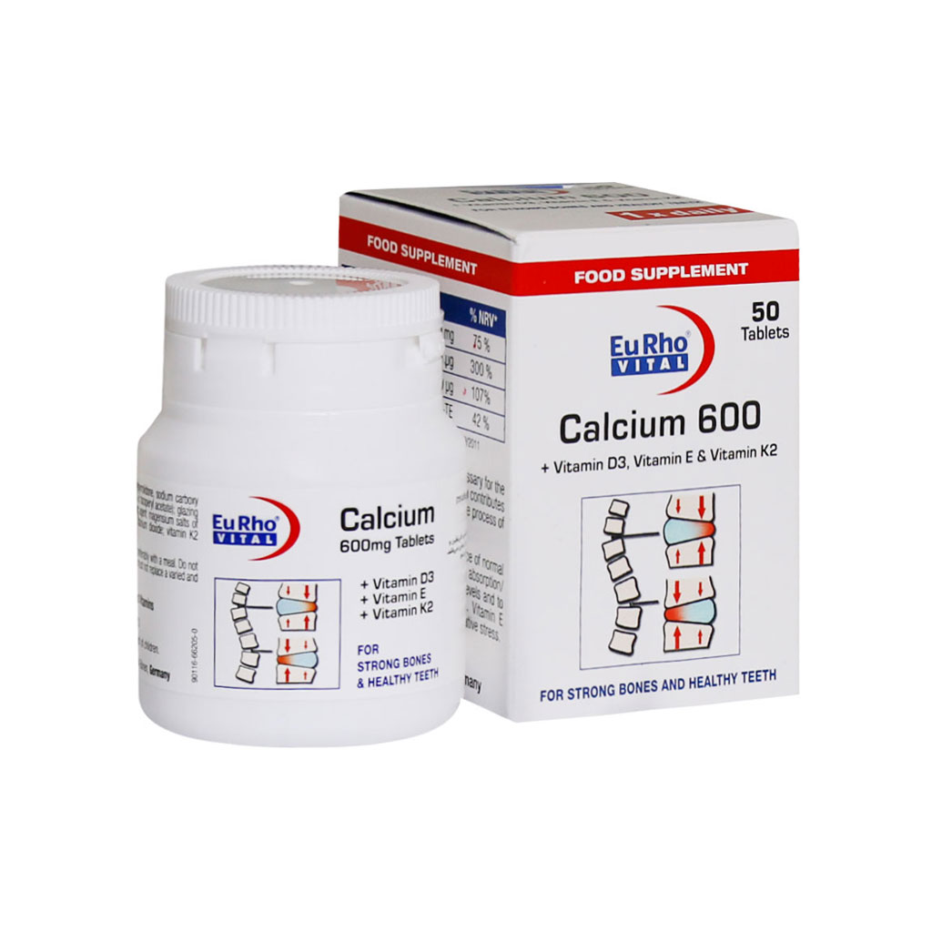 قرص کلسیم 600 میلی گرم و ویتامین دی3 یوروویتال 50 عددی