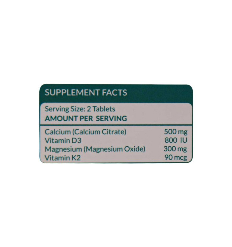 حاوی کلسیم، ویتامین د3، منیزیم و ویتامین کا2
