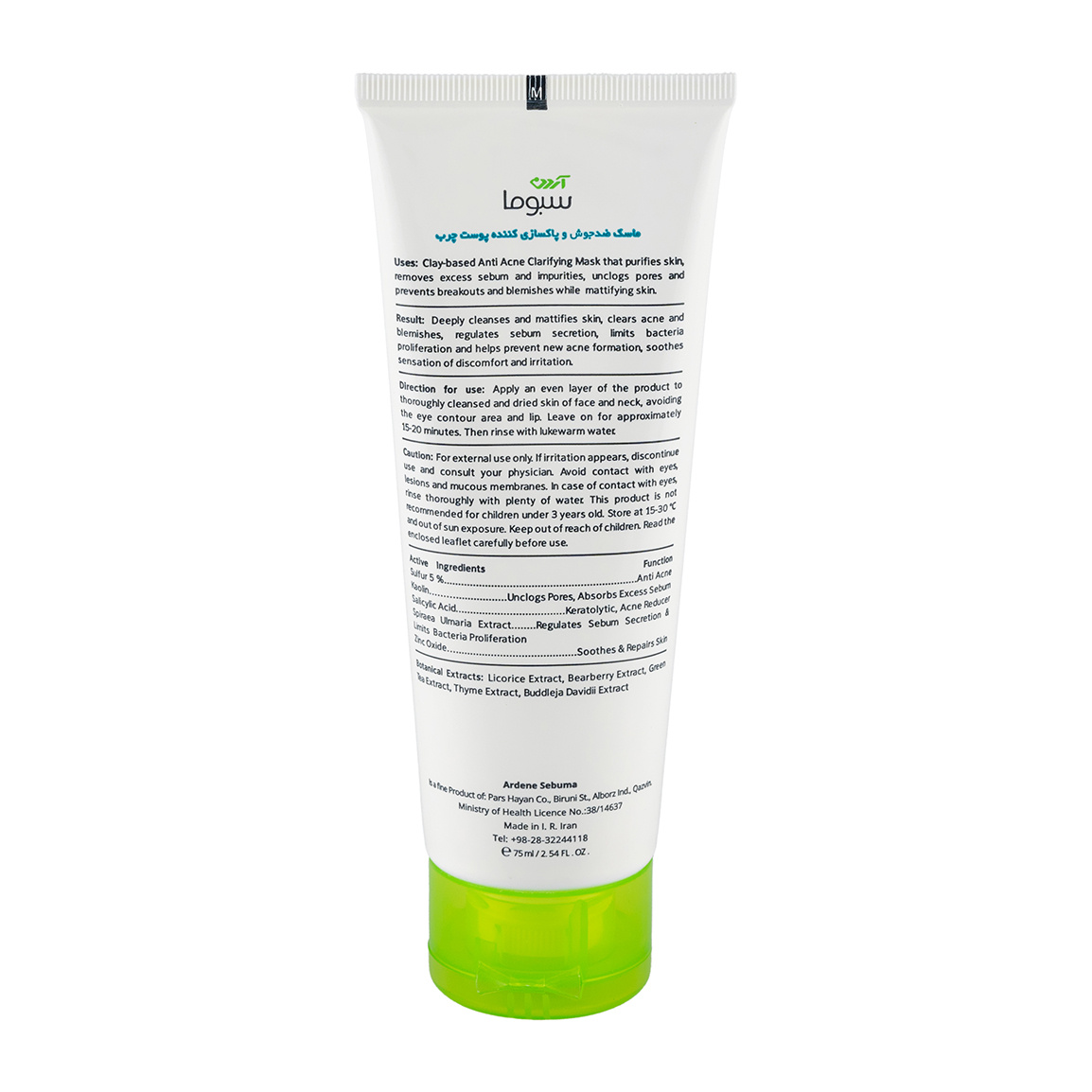 ماسک ضد جوش و پاکسازی کننده پوست چرب سبوما آردن حجم 75 میلی لیتر