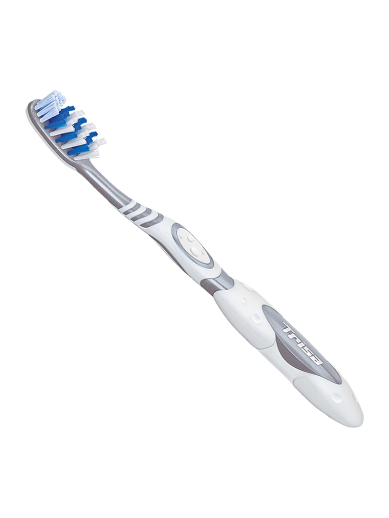 مسواک اکسترا وایت تریزا با برس متوسط را با زاویه 45 درجه روی شیار لثه قرار دهید و 2 یا 3 دندان را همزمان با هم مسواک بزنید. برای مسواک زدن قسمت های پشت دندان های پیشین بالا و پایین، مسواک را به طور عمودی بگیرید. با استفاده از سر مسواک و ایجاد حرکت ملایم بالا و پایین، پشت این دندان ها را تمیز کنید.
