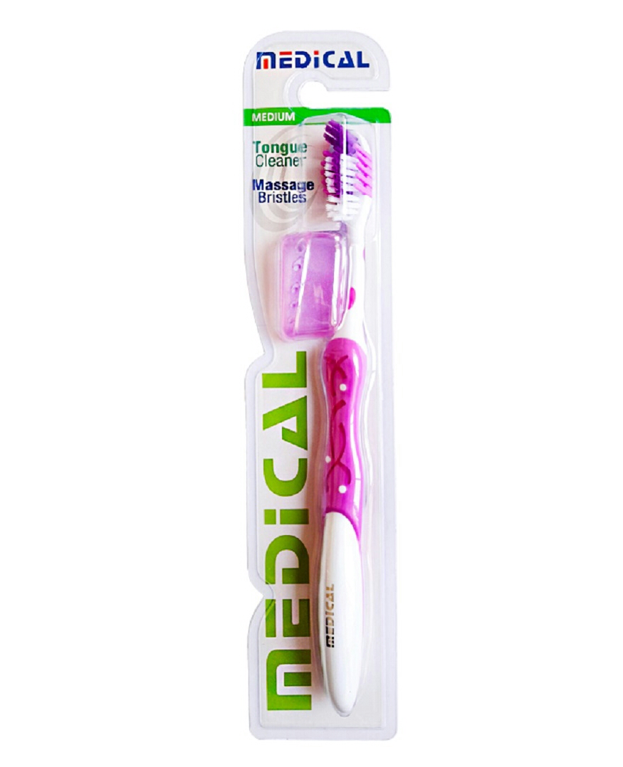 مسواک دارای پاک کننده زبان مدیکال با برس متوسط