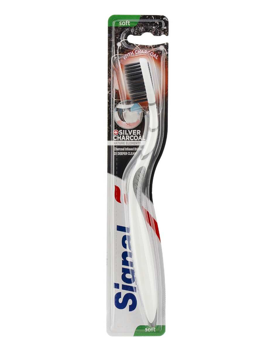 - مقداری از خمیردندان را روی مسواک سیلور چارکل سیگنال نرم قرار دهید.