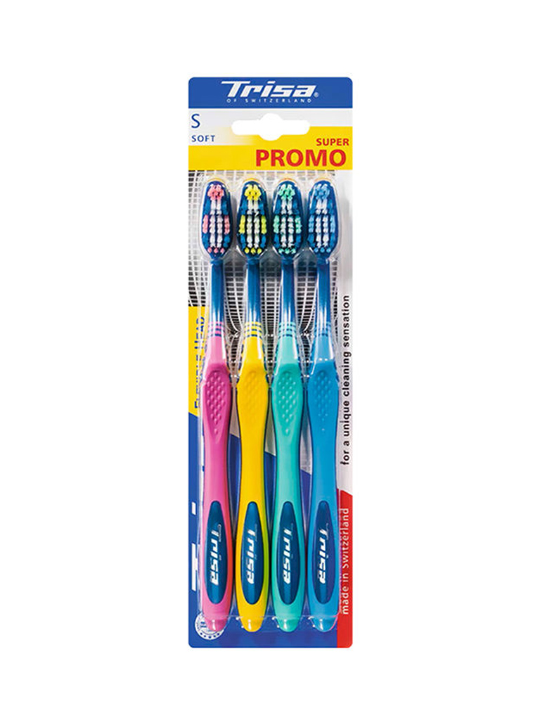 Trisa Super Promo Flexible Head Toothbrush Soft 4Pcs