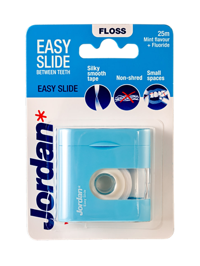 مقدار مناسب از نخ دندان ایزی اسلاید جردن را جدا کرده، بین خط دندان قرار دهید و نخ دندان را بین دندان ها بکشید، به طوری که بین خط دندان ها تمیز شود.