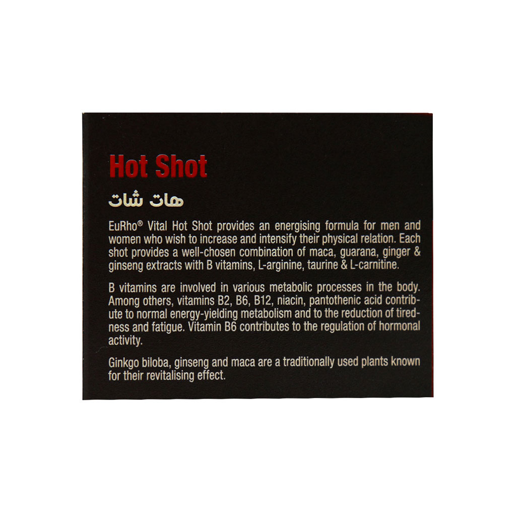 جهت تاثیرگذاری بیشتر، یک ساعت قبل از رابطه جنسی، یک ویال هات شات یوروویتال مصرف شود.