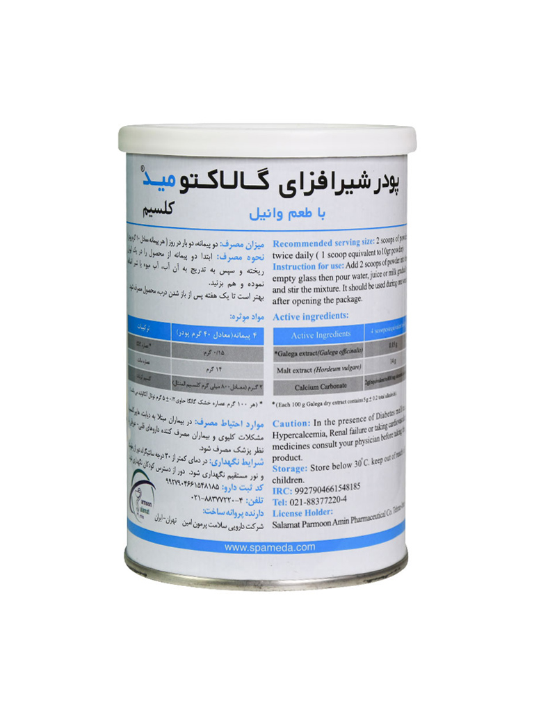- پودر شیرافزای گالاکتومید کلسیم مکمل غذایی بوده و برای تشخیص، پیشگیری یا درمان نیست.