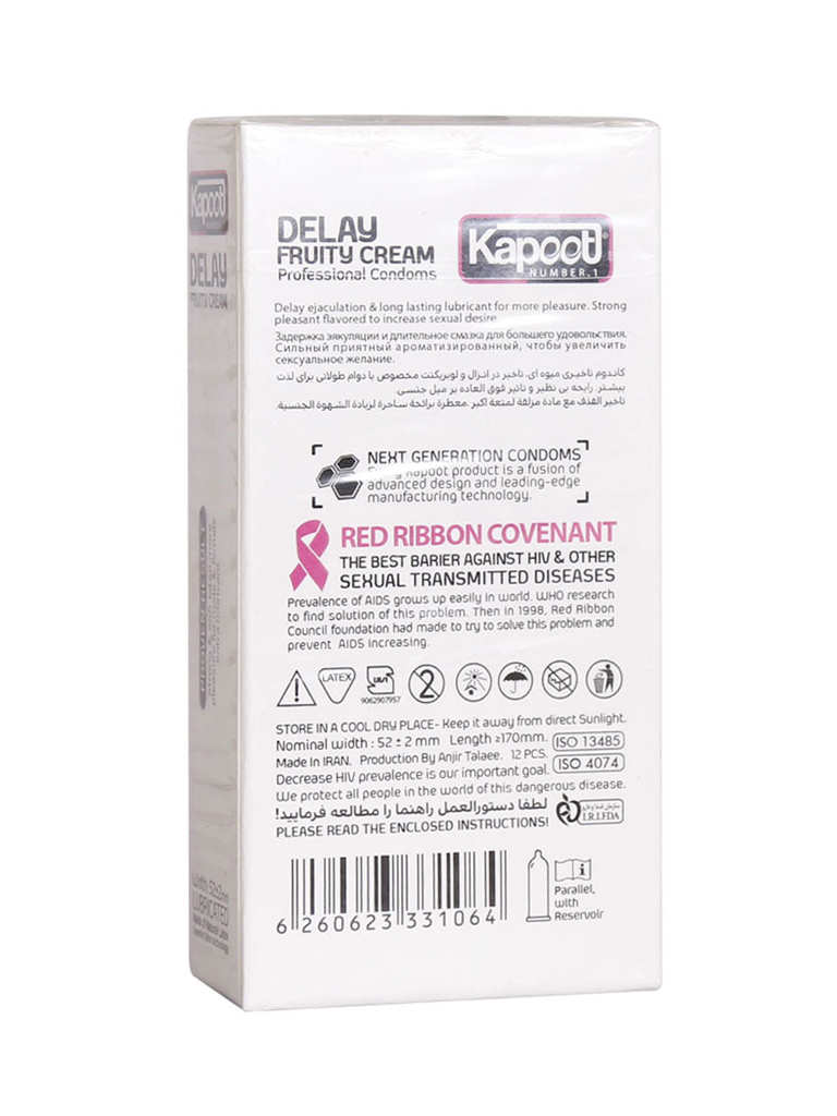 کاندوم تاخیری میوه ای مدل Delay Fruity Cream کاپوت 12 عددی