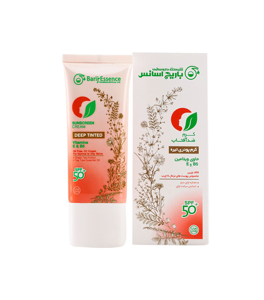 کرم ضد آفتاب باریج اسانس کرم پودری SPF50 مخصوص پوست چرب رنگ تیره حجم 60 میلی لیتر