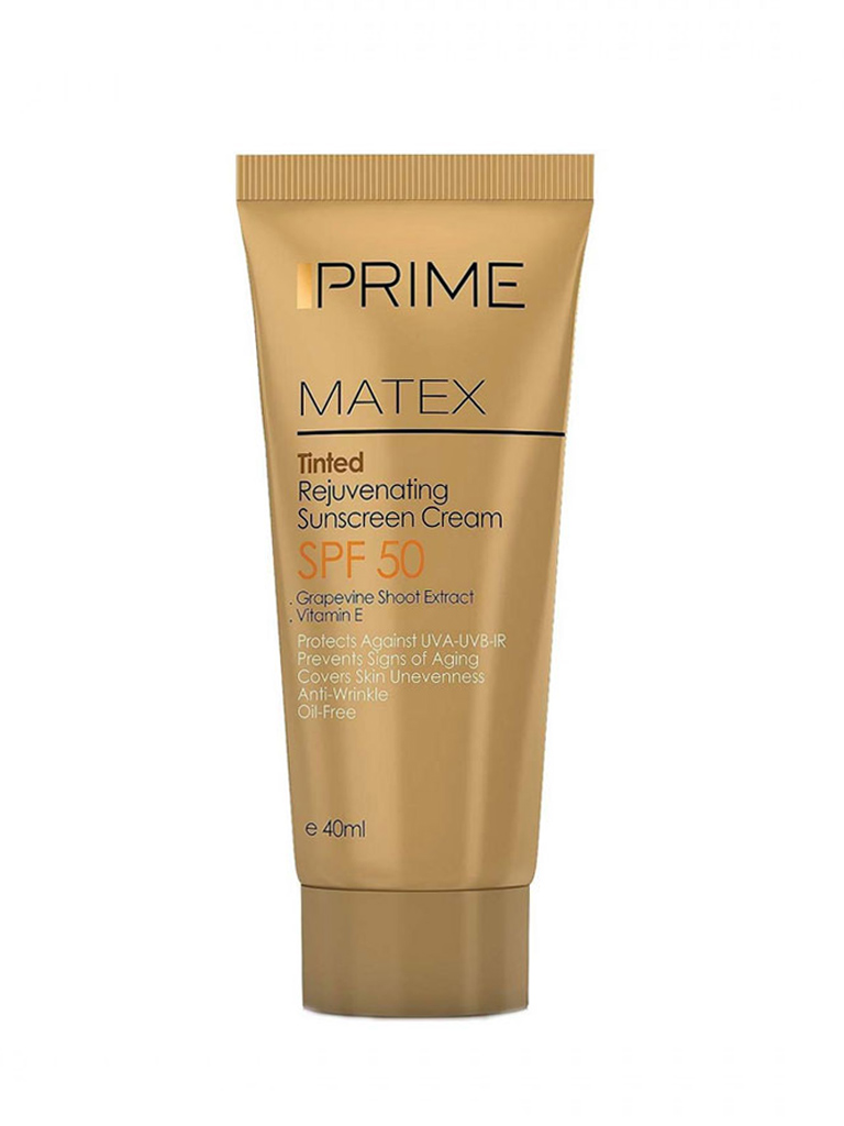 کرم ضد آفتاب جوان کننده SPF50 رنگی پریم را می توان ضد آفتابی با محافظت ایده آل در برابر اشعه های مضر خورشید دانست. این محصول به دلیل ترکیبات به کار رفته در آن علاوه بر خواص ضد آفتابی، دارای خواص ضد چروک نیز می باشد. کرم ضد آفتاب جوان کننده ماتکس پریم، برای انواع پوست قابل استفاده می باشد، اما افرادی که دارای پوست خیلی چرب هستند، در استفاده از این محصول دقت بیشتری نمایند، زیرا ممکن است بعد از استفاده، پوستشان براق شده و حالت مات نداشته باشد. این محصول، حاوی عصاره تاک است و به دلیل رفتار شبه بوتاکس و شبه رتینوئیدی، این عصاره می تواند چین و چروک ها را کاهش دهد و پوست را جوان سازد. رنگی بودن این محصول، باعث پوشاندن لکه ها، جوش ها و نواقص پوستی می شود، اما نباید انتظار کرم پودر را از آن داشته باشید.