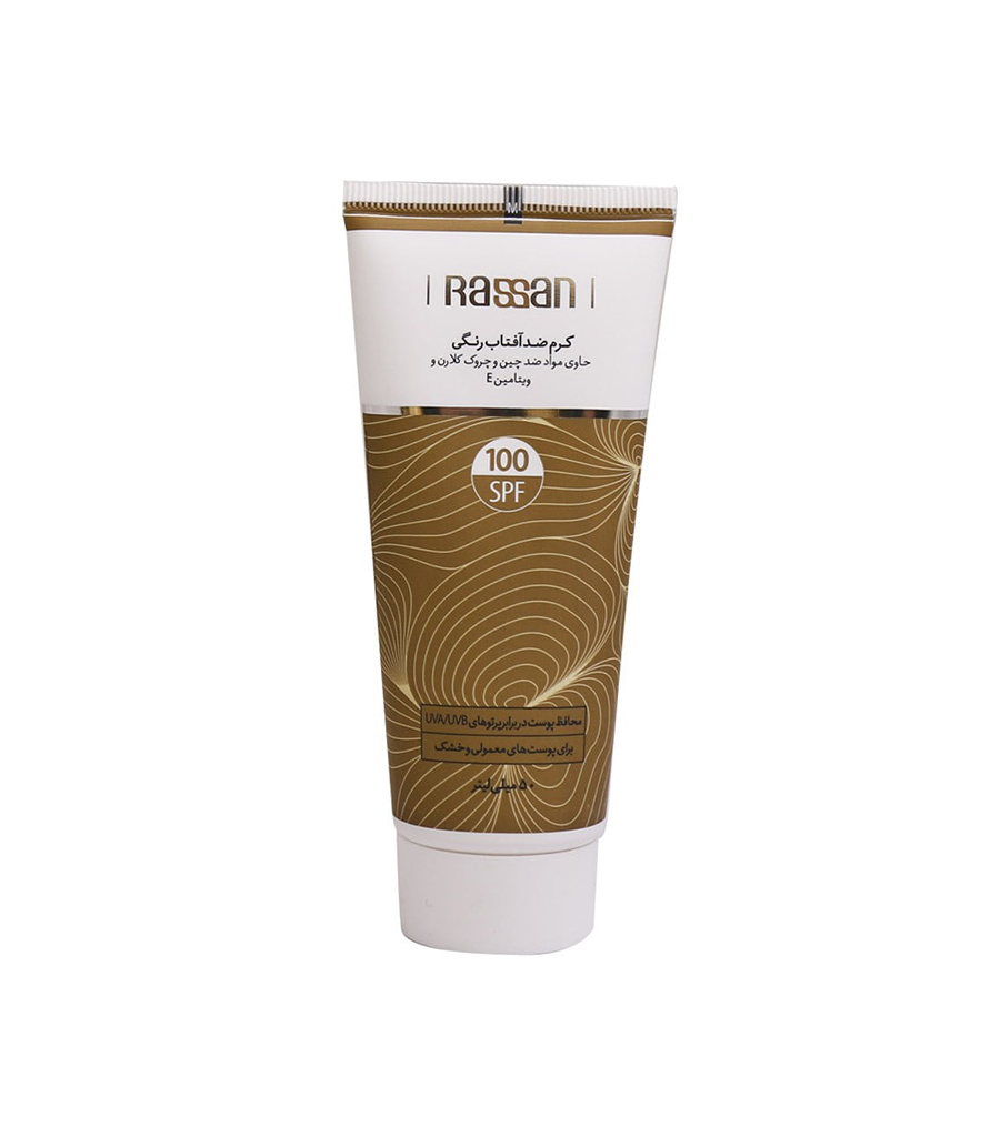 کرم ضد آفتاب رنگی راسن spf100 حاوی مواد ضد چروک حجم 50 میلی لیتر