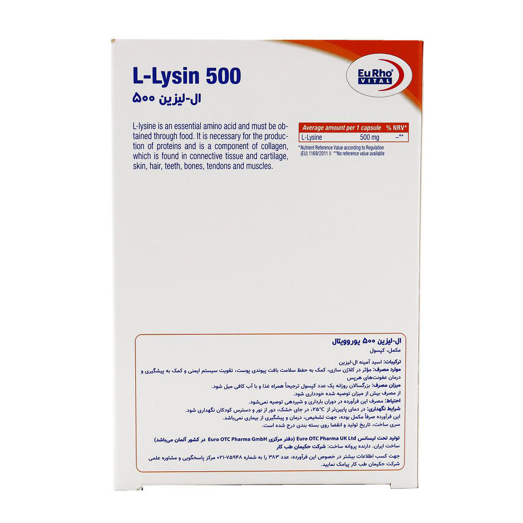 کپسول ال لیزین 500 میلی گرم یوروویتال 30 عددی