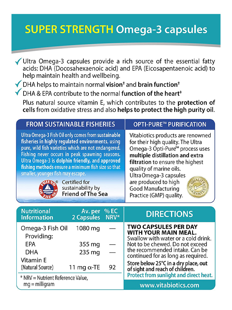 روزانه دو عدد از کپسول اولترا امگا 3 ویتابیوتیکس را به همراه وعده غذایی اصلی مصرف نمایید و یا طبق دستور پزشک از این مکمل استفاده کنید.