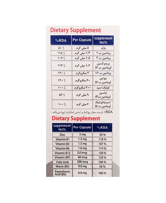 حاوی زینک و ب کمپلکس ، حفظ سلامت پوست، مو و ناخن و تقویت سیستم ایمنی