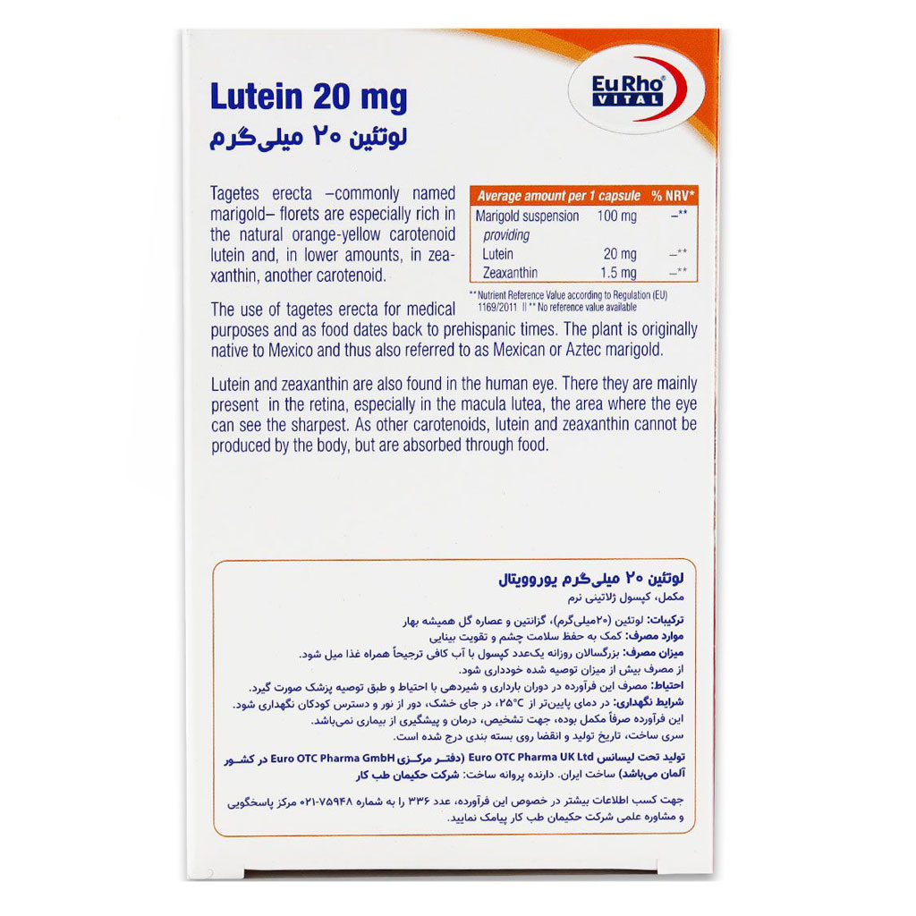 کپسول لوتئین 20 میلی گرم یوروویتال 60 عددی