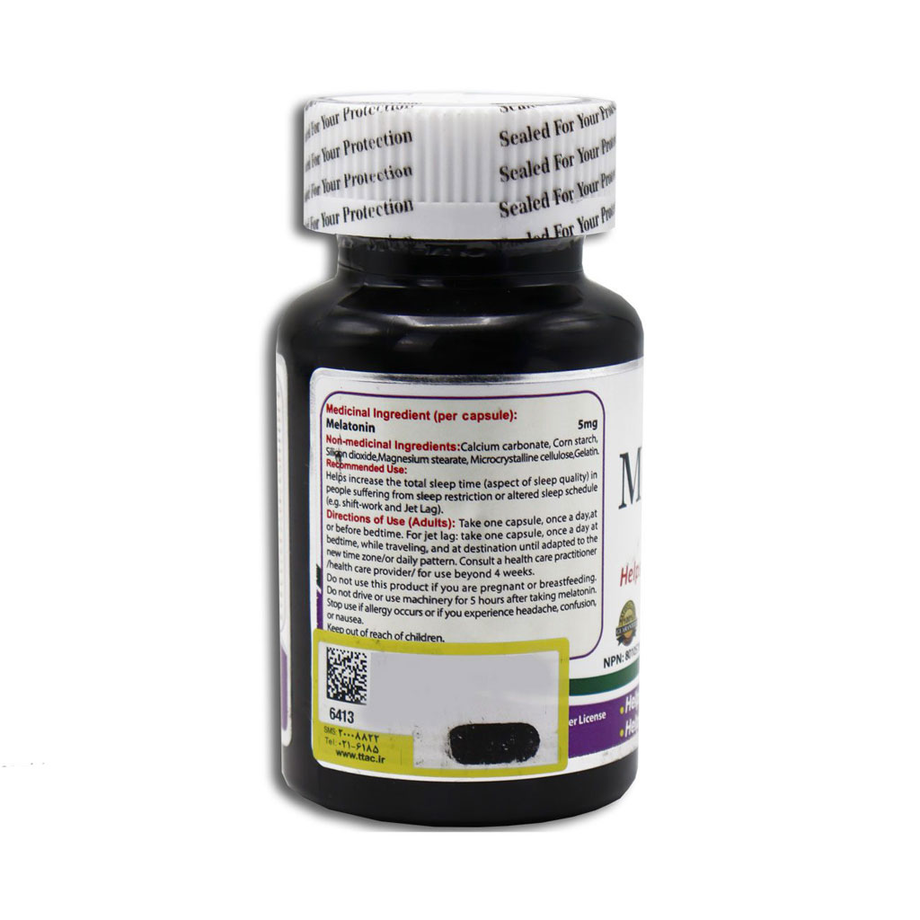 حاوی 5 میلی گرم ملاتونین به ازای هر کپسول