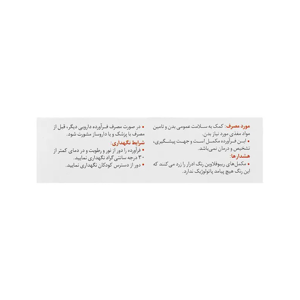 این فراورده مکمل بوده و جهت تشخیص، پیشگیری و یا درمان بیماری نمی باشد.