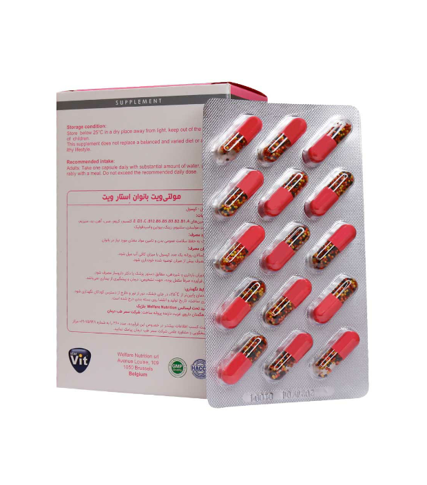 بزرگسالان روزانه یک عدد کپسول مولتی ویت بانوان استار ویت با میزان کافی آب میل کنند.