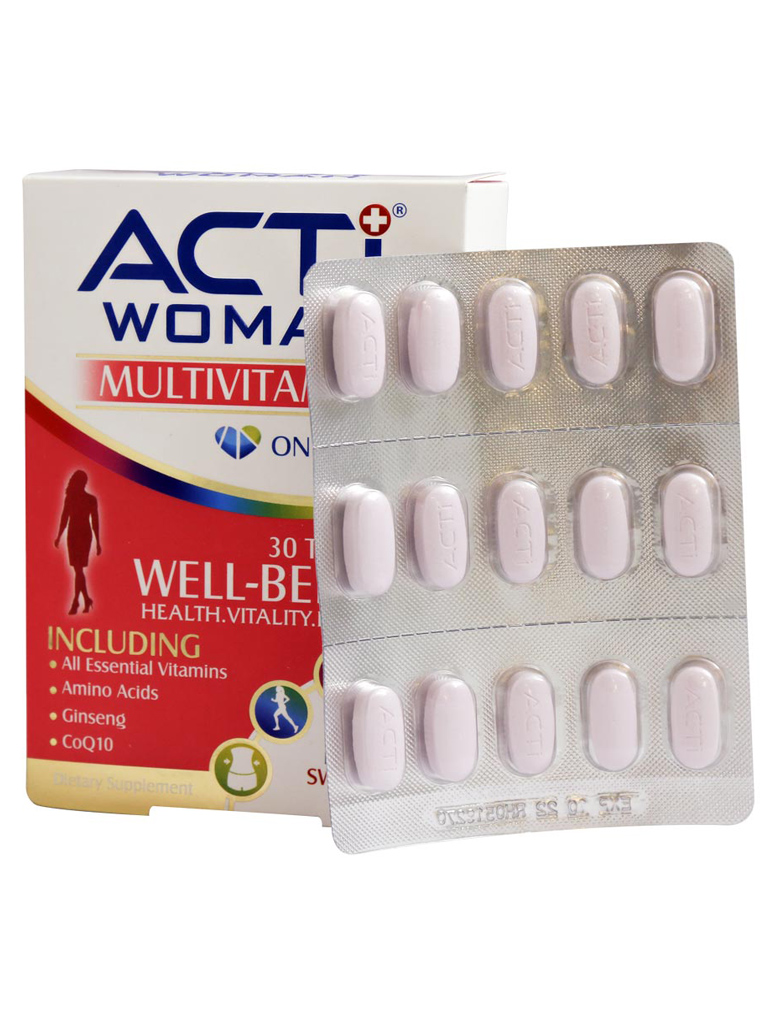 قرص اکتی وومن یک مولتیویتامین کامل مخصوص برای زنان است. این مکمل ۳۱ ماده مغذی ضروری مانند ویتامینهای گروه B، ویتامین C، آهن، زینک و عصاره چای سبز را شامل میشود. عصاره چای سبز به دلیل خاصیت چربیسوزیاش یکی از ترکیبات کلیدی این قرص است.